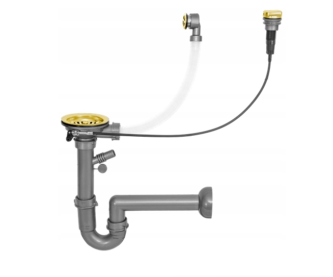Úsporný sifon umožňuje získat spoustu volného prostoru ve skříňce pod dřezem. Hodí se ke granitovým dřezům s jednou komorou. Automatický sifon umožňuje uzavřít a otevřít odtok vody, aniž byste museli ponořit ruce do vody.