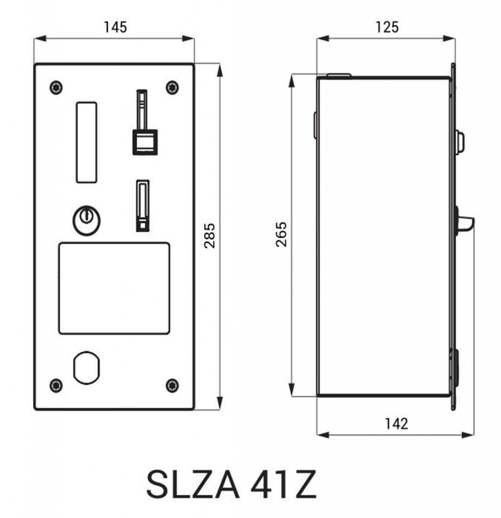 - nerezový mincovní automat s elektronikou, mincovníkem a boxem na mince, sada klíčů (2 ks)