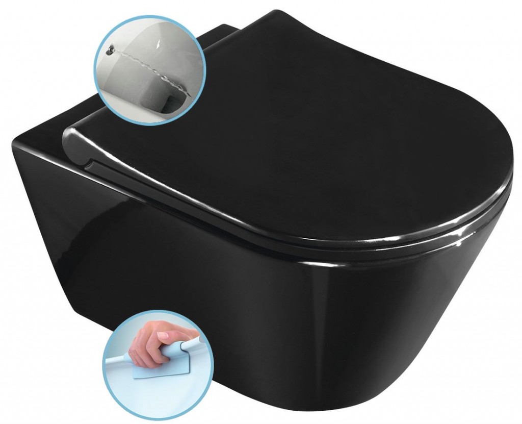 Rimless (NoRim) – toalety bez tradičního oplachového kruhu. Hladký povrch bez dutin a záhybů. Oplachová voda vytéká rozdělovačem vody pouze ze zadní části WC mísy a díky speciálnímu tvaru keramiky dokonale opláchne vnitřní prostor. Výhodou je snadná údržba a čištění WC mísy. Samozřejmostí je duální systém splachování s množstvím vody 3 nebo 4,5 l.