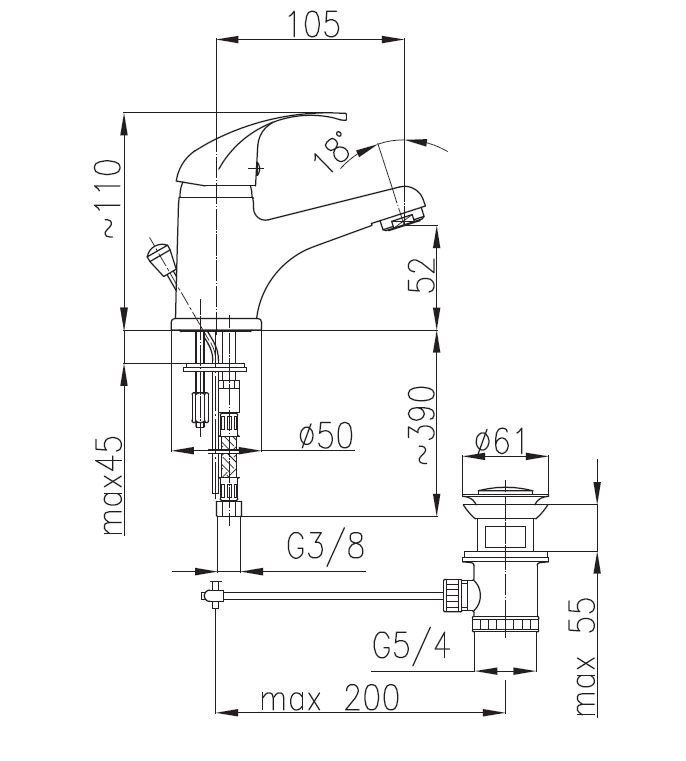 Stojánková umyvadlová baterie AZURYT s výpustí