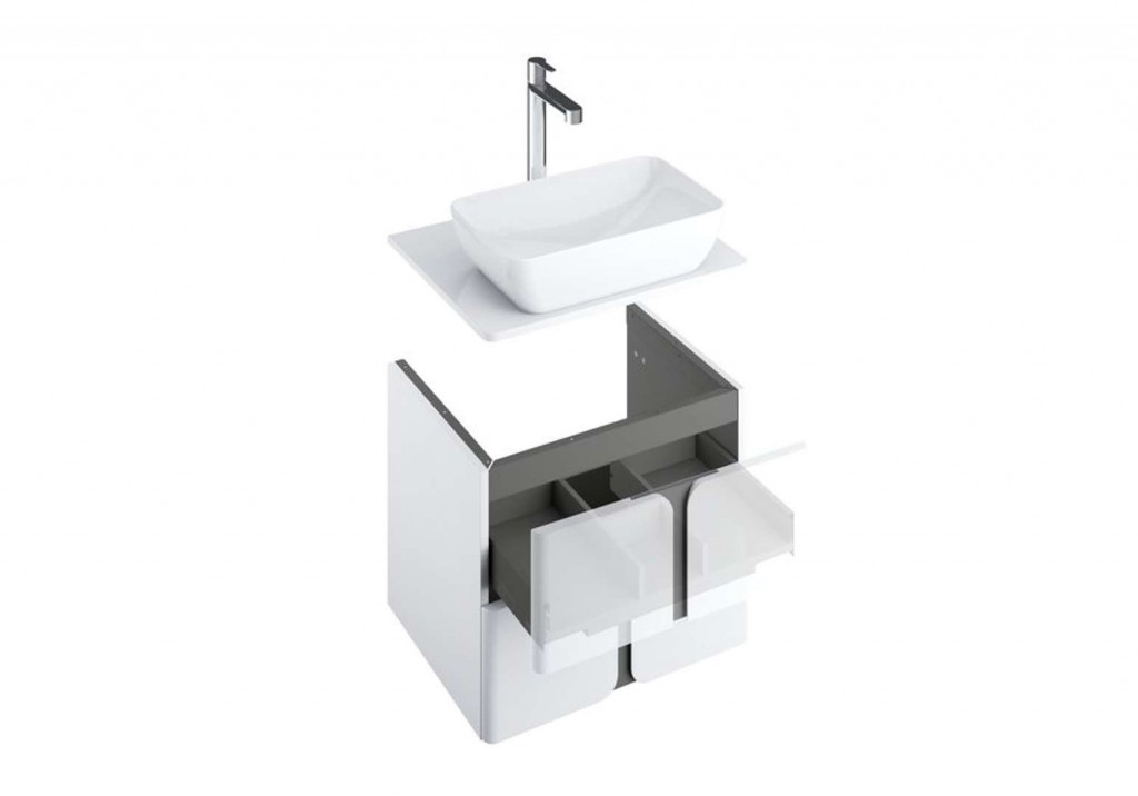 Závěsnou skříňku lze kombinovat se zapuštěným umyvadlem Balance 800 a umyvadlovým sifonem s pevnou výpustí.