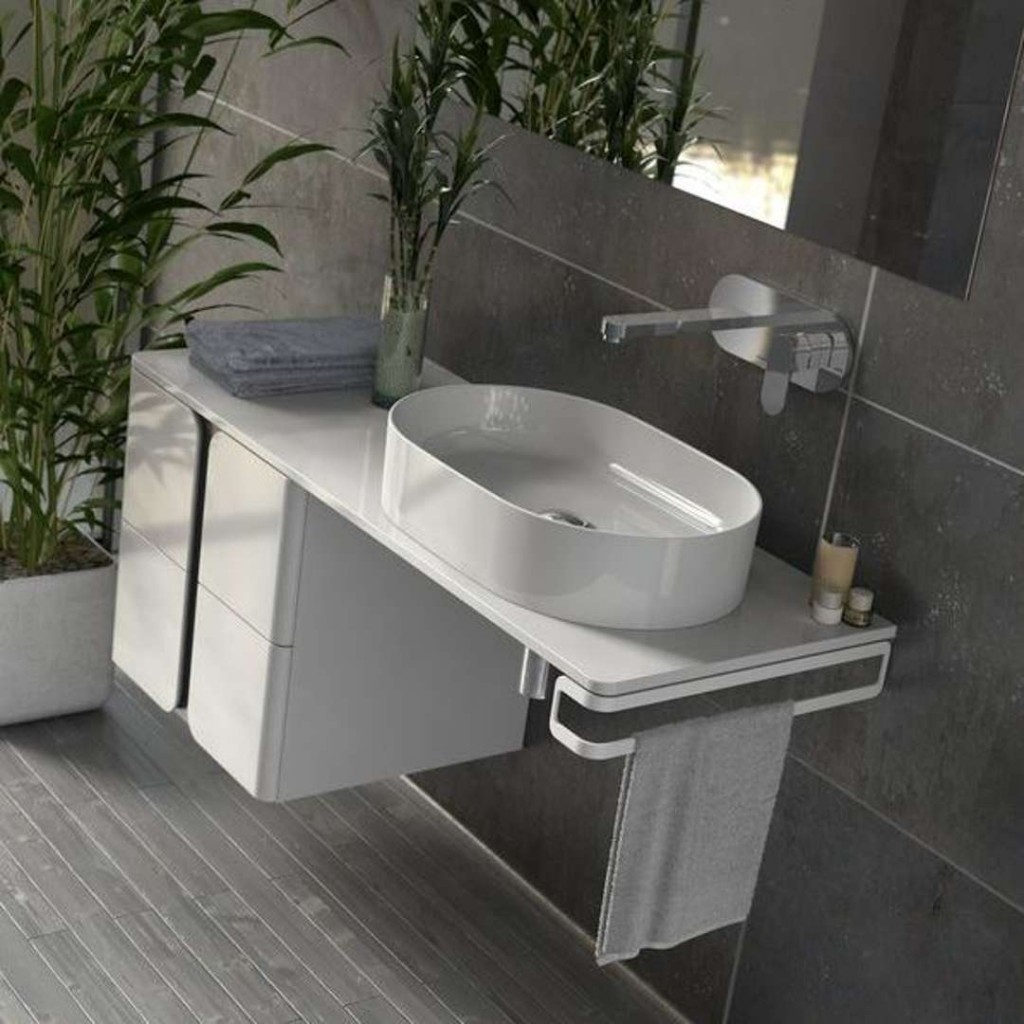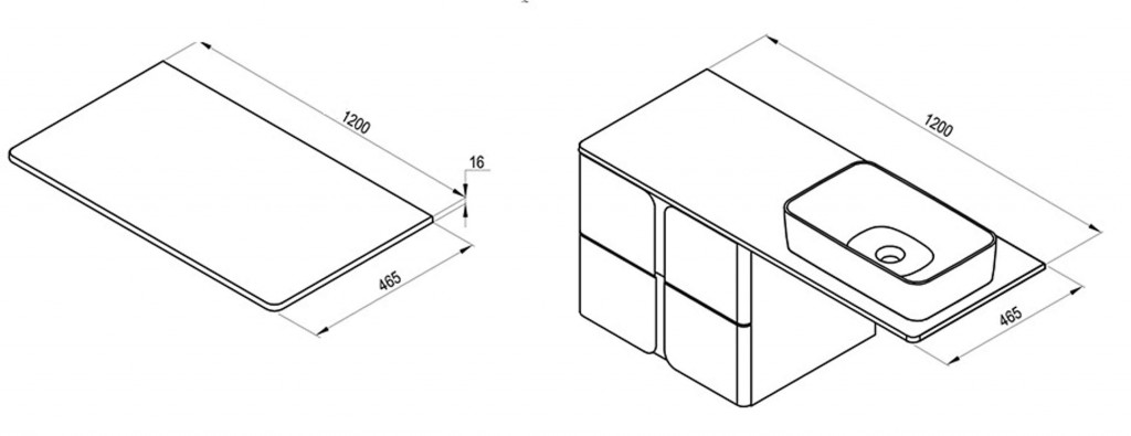 Pokud je deska umístěna na závěsnou skříňku z jedné strany, je nutné z druhé strany desku podepřít pomocí konzole desky Balance/Comfort 1200.