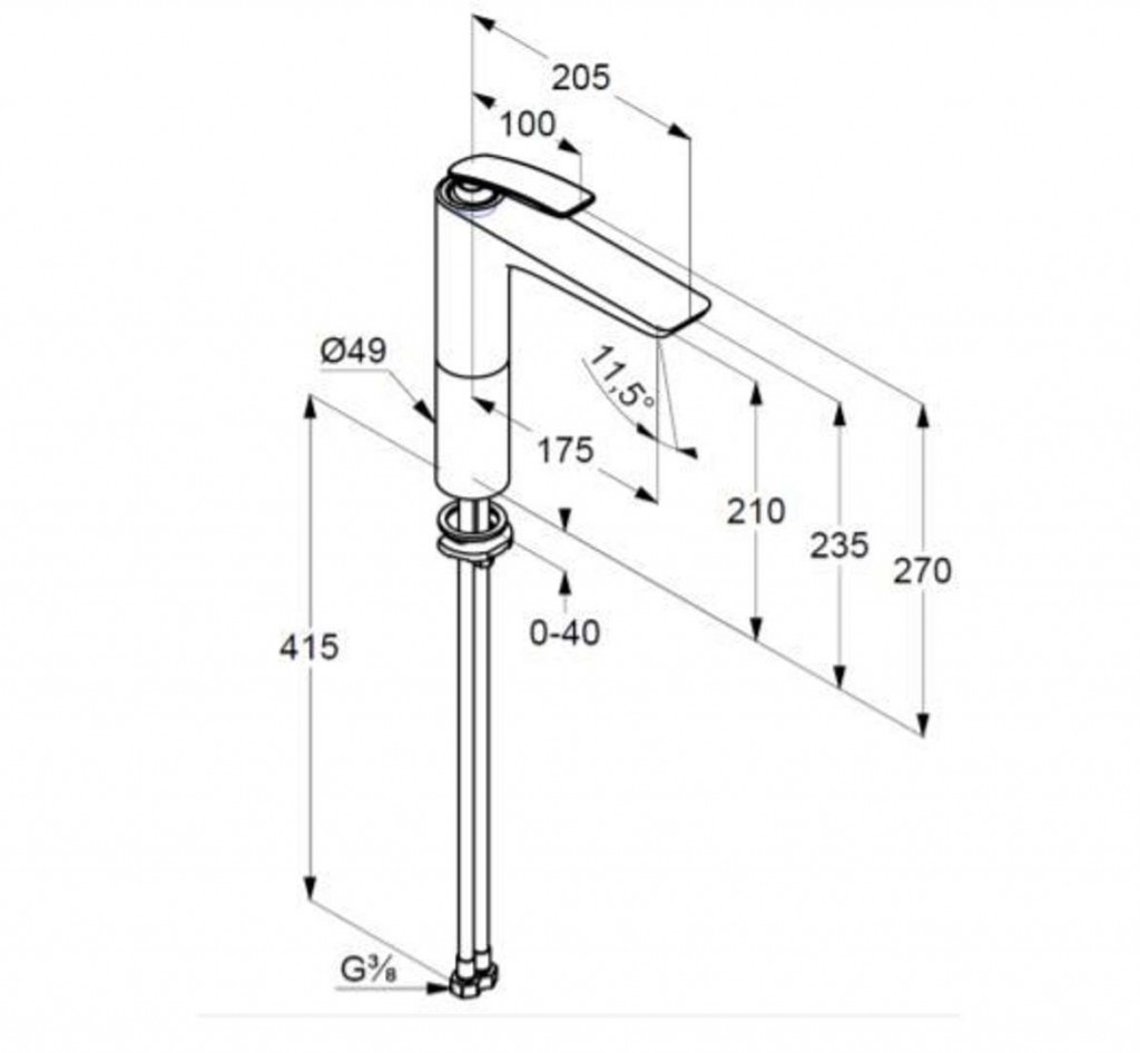 Stojánková jednootvorová baterie s vysokým výtokem, DN 15