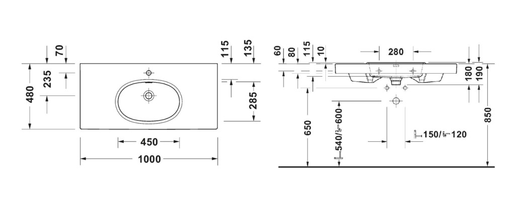 - s 1 otvorem pro umyvadlovou baterii
