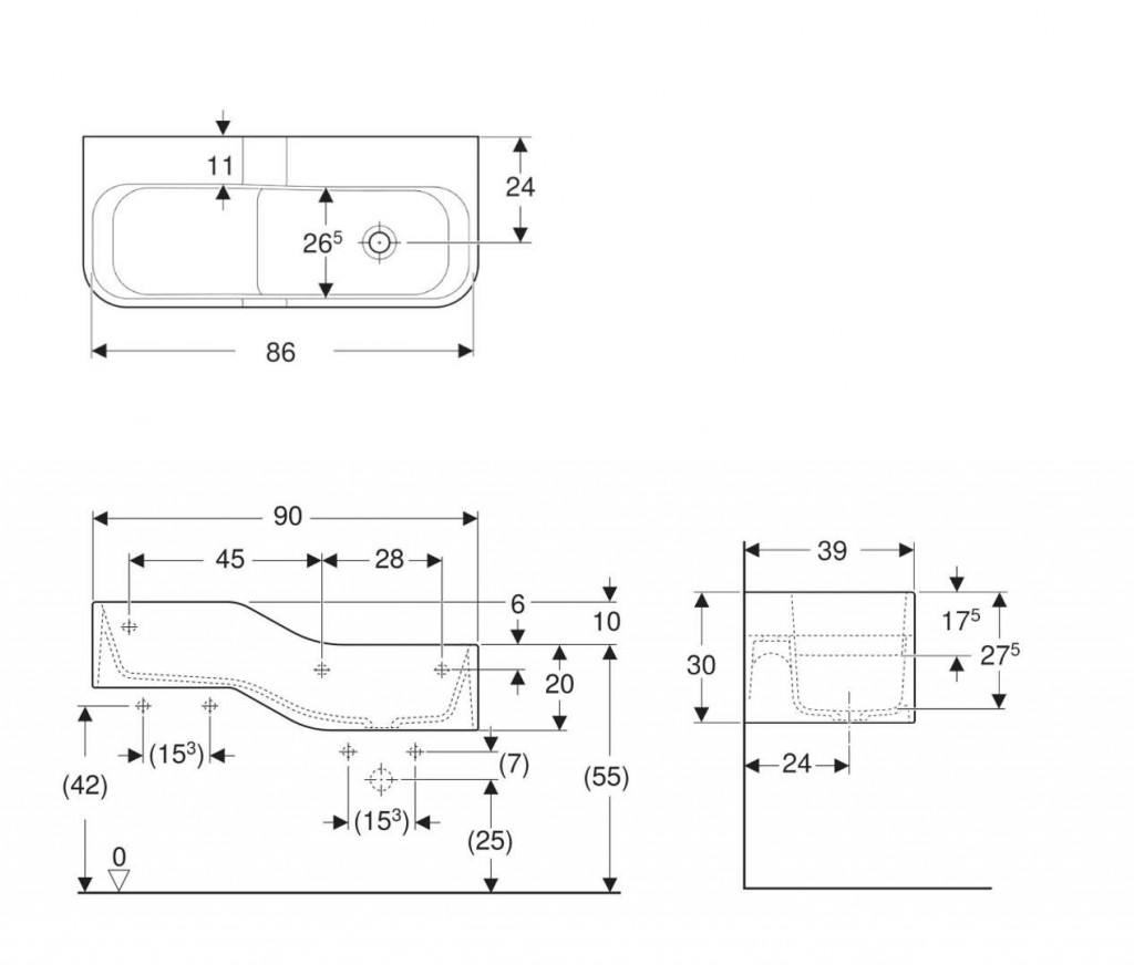 - dvě mycí místa, hlubší umyvadlo vpravo