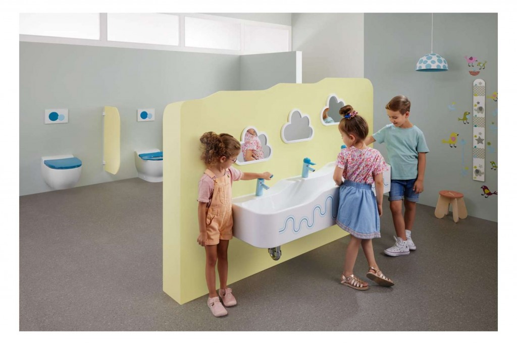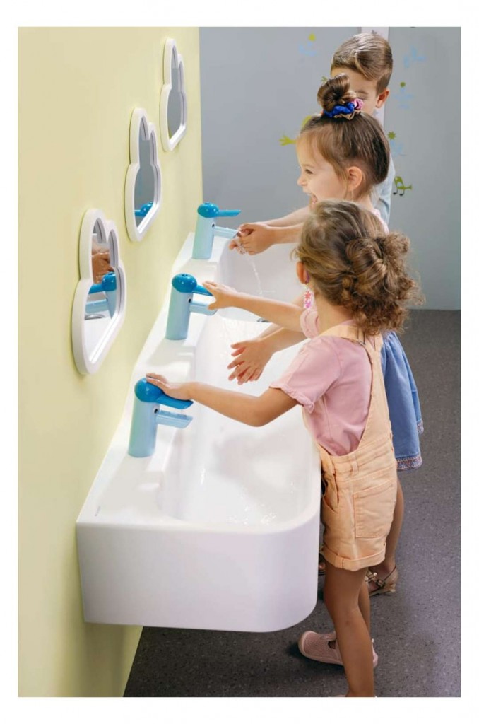Aby se zabránilo opaření, doporučuje se použití minitermostatu k umyvadlovým armaturám Geberit Bambini.