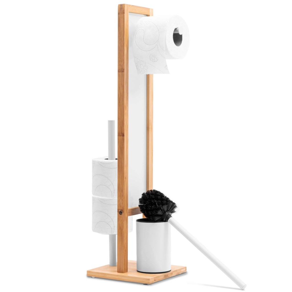 Bambusový stojan na toaletní papír se štětkou si zamilujete. Toaletní štětku i papír budete mít hned po ruce, a navíc nemusíte nic vrtat. Stačí jen postavit a můžete směle používat. Díky tomu, že je ze 100% přírodního bambusu, dodáte své koupelně přírodní prvek, který navozuje příjemnou a relaxační atmosféru. Skvěle ladí s dalšími přírodními dekoracemi, jako jsou traviny, dřevo či juta.
