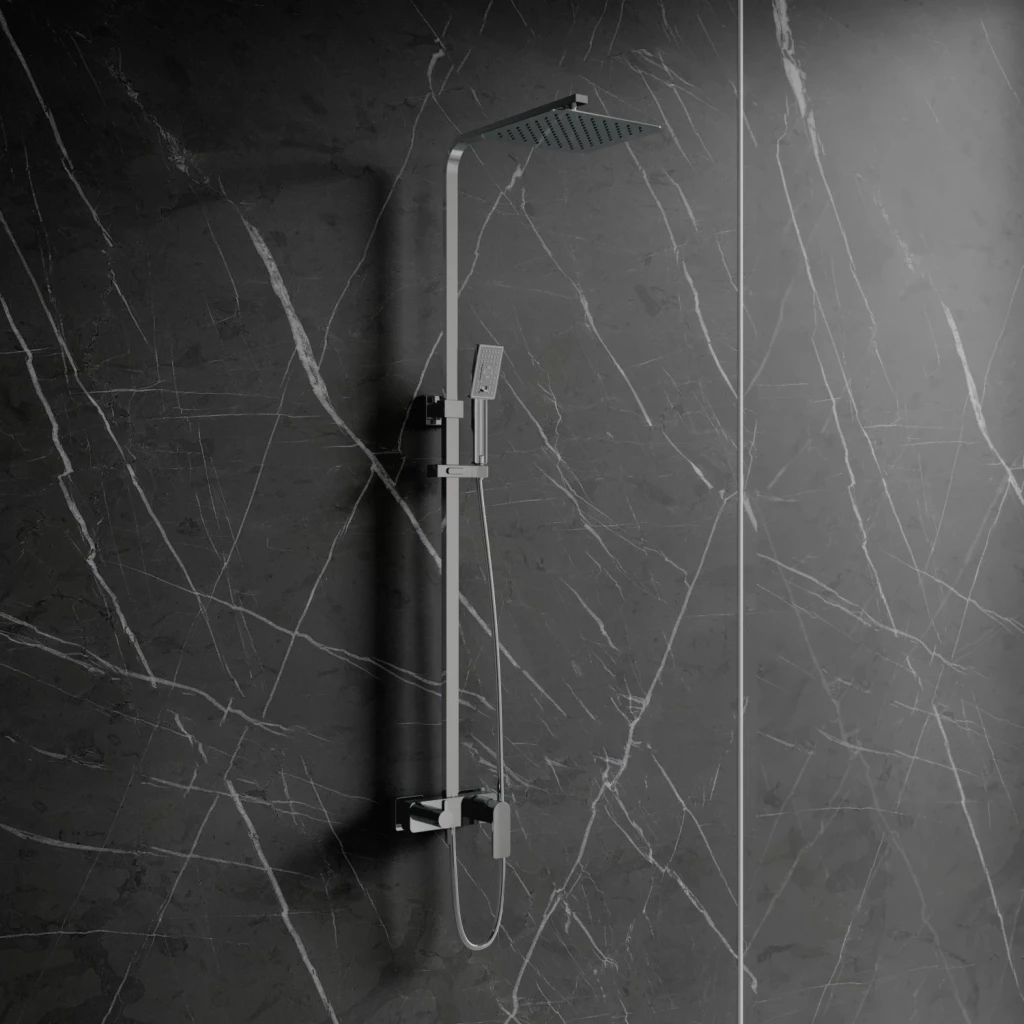 Sprchový sloup s nástěnnou sprchovou baterií BARETTI je dostupný v barevných variantách chrom a černá mat.