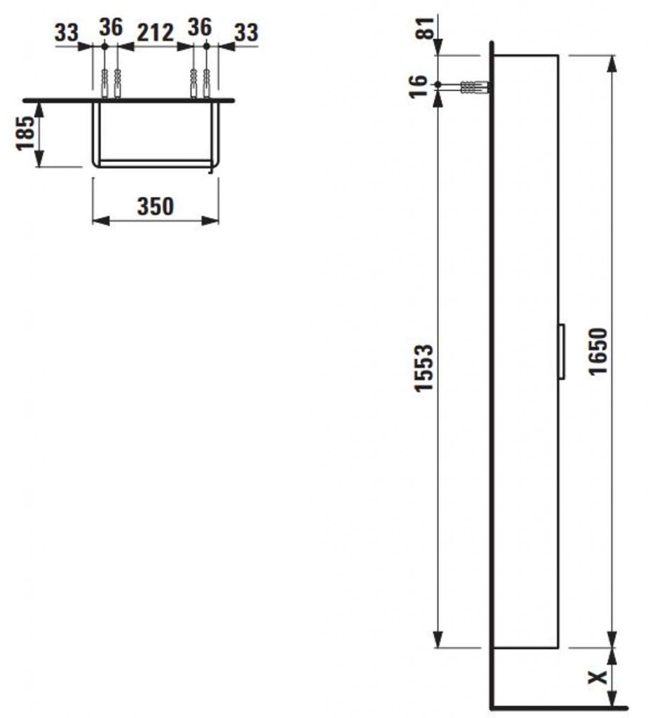 - 4 x nastavitelná skleněná police, 1 x fixní police