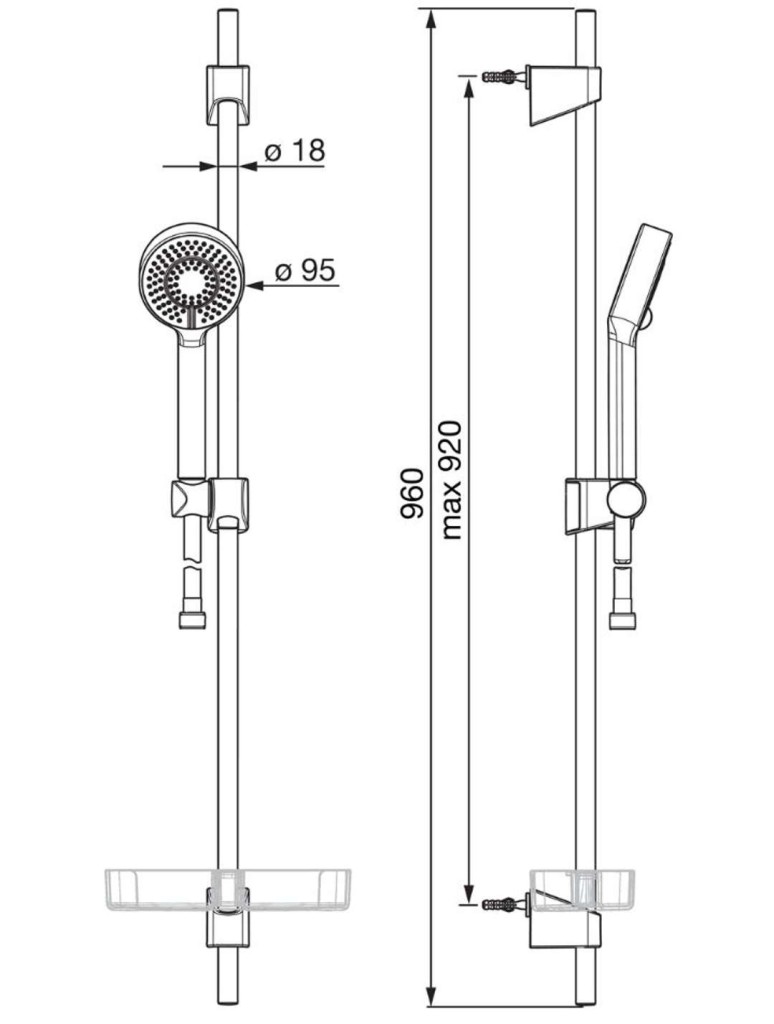- sprchová tyč 960 mm, s držáky a posuvným jezdcem