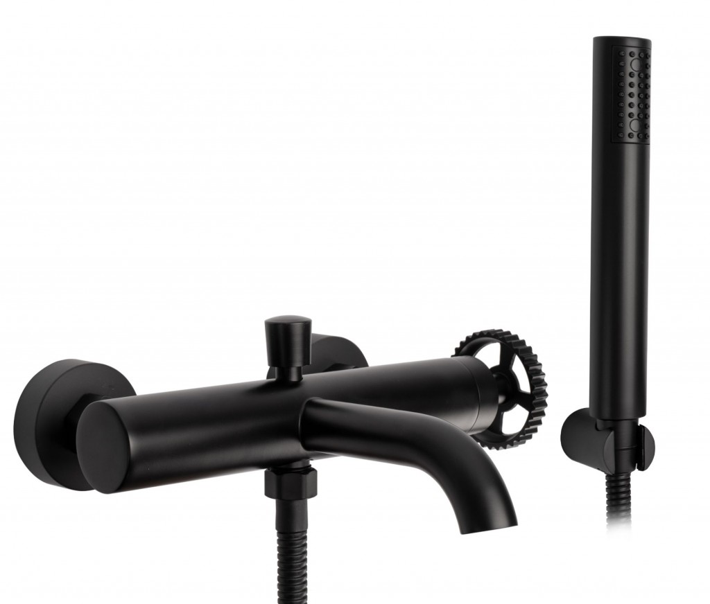 Vanová baterie Vertigo má svůj jedinečný styl. Tvarově připomíná trubky a kolečko jí ještě více dodává industriální vzhled. Pro koupelnu ve stejném duchu doplňte i další zařizovací předměty.