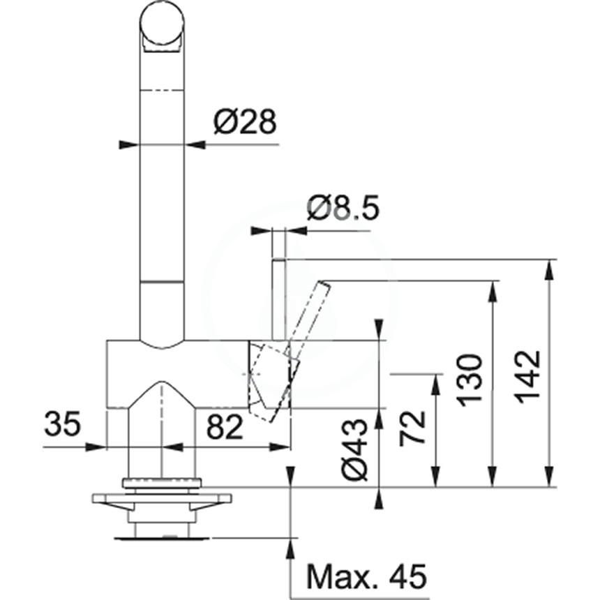 - připojení na hadičky 45 cm