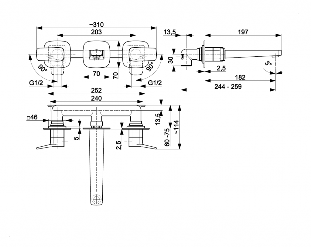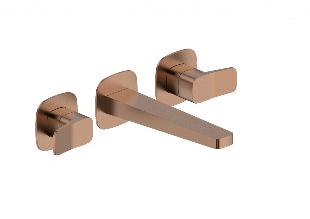 KFA - Baterie Malaga, umyvadlová, 3-otvorová, podomítková, stěnová, PVD broušené růžové zlato (4529-821-34)