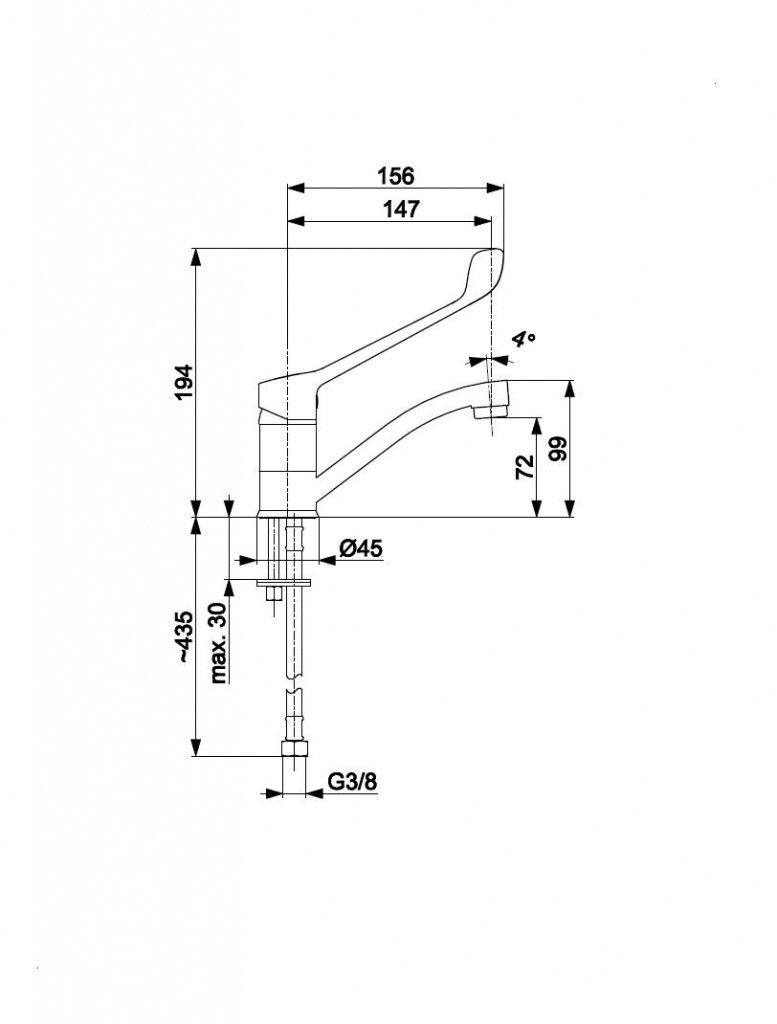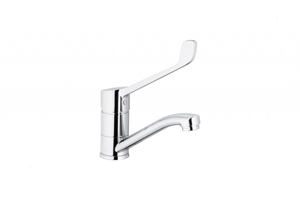 Stojánková umyvadlová baterie MEDICO NEW od výrobce KFA ARMATURA s keramickou kartuší s průměrem 35 mm a otočným ramínkem o délce 156 mm.