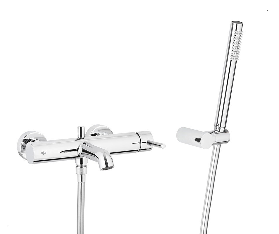 Nástěnná vanová baterie MOZA od výrobce KFA ARMATURA s keramickou kartuší 35 mm a montážní roztečí 150 mm. Výhodou je perlátor Neoperl Rub Clean M24x1, který proud vody provzdušňuje. Součástí baterie je nástěnný držák, sprchová hadice z PVC délky 150 cm a ruční sprcha s jednou funkcí a systémem Easy Clean.
