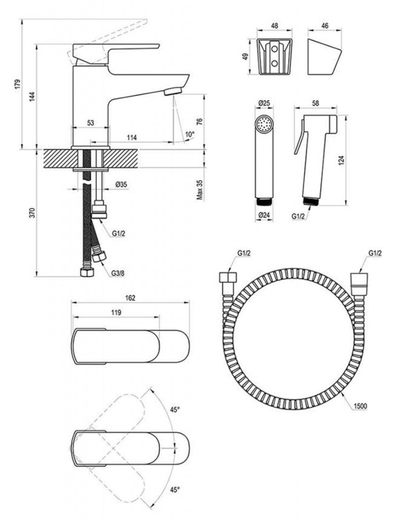 Umyvadlová stojánková baterie s bidetovou sprchou
