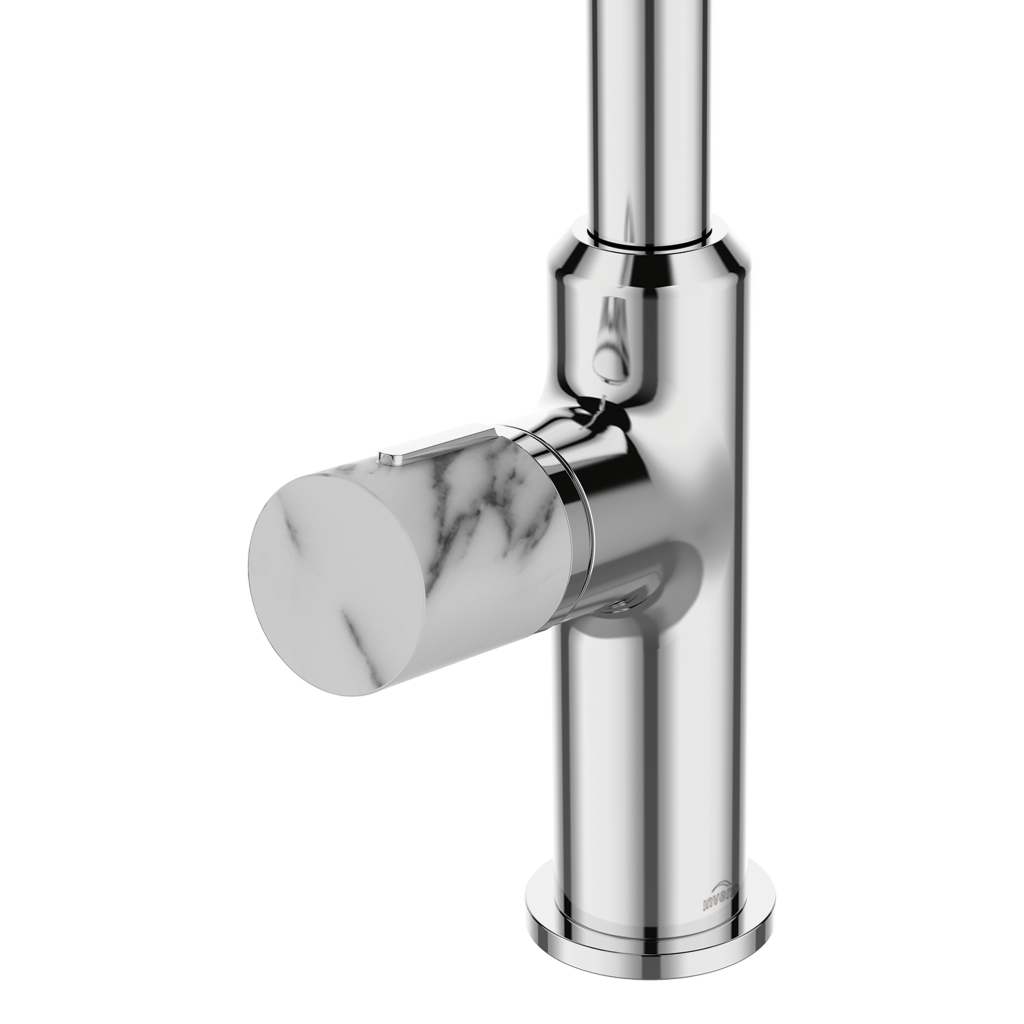 Dřezová baterie série Gabro Plus v klasickém chromu je vybavena rukojetí s mramorovým efektem, která vám umožní zařídit všechny místnosti v jednom konzistentním stylu. Tato kombinace vytvoří zajímavý vizuální efekt a umožní vám vnést elegantní charakter do interiéru kuchyně. Otočný výtok použitý u kuchyňské baterie zajišťuje její plnou funkčnost. Díky úspornému perlátoru je to perfektní řešení pro lidi, kterým záleží na světě kolem nás.