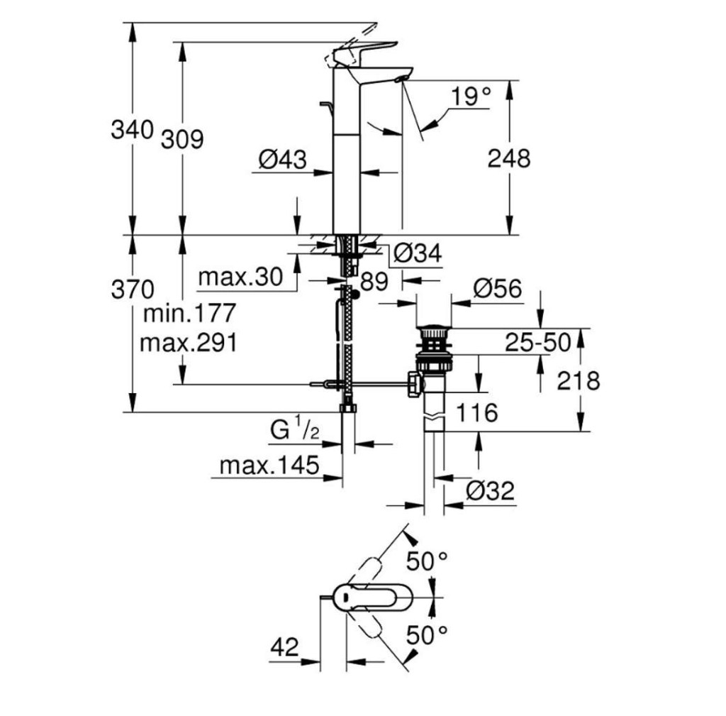 - délka výtoku: 89 mm
