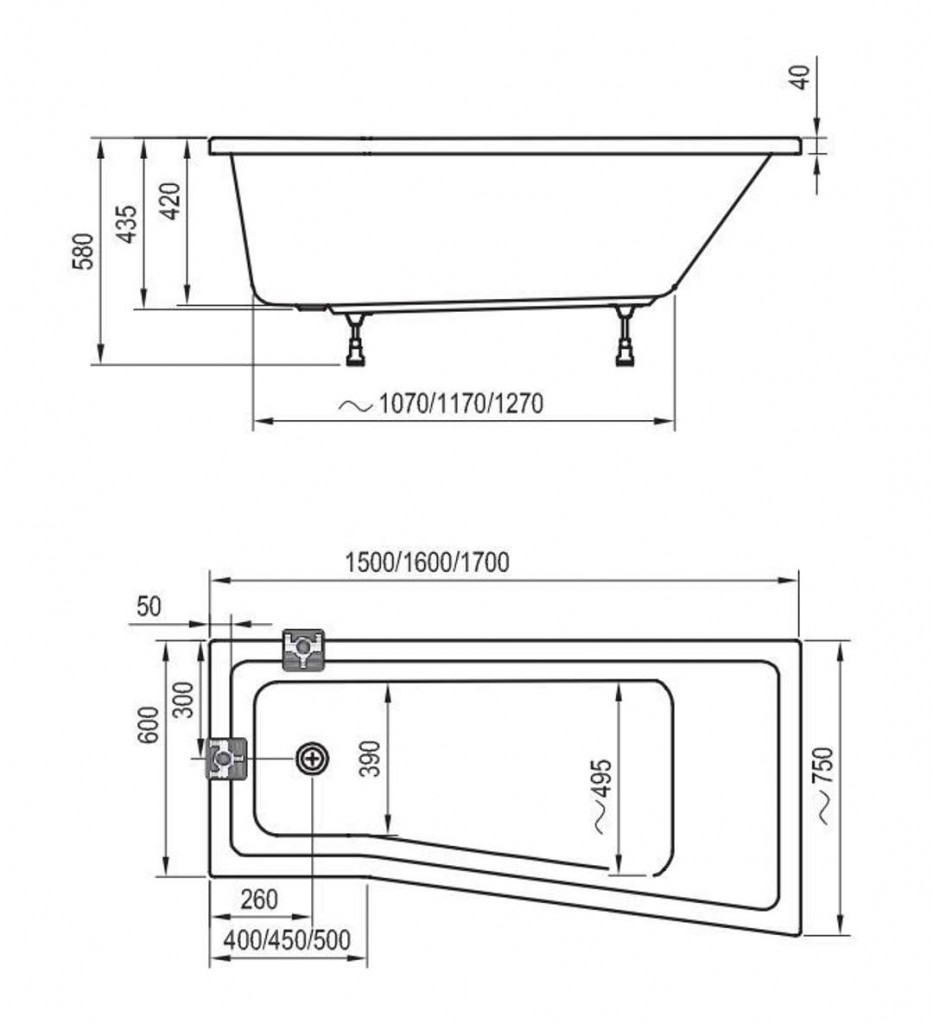 - vhodná odtoková souprava: délka 570 mm (Click-Clack), je třeba objednat samostatně