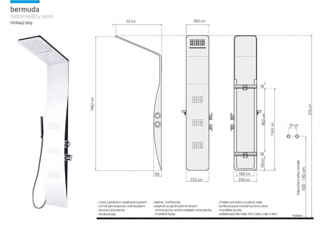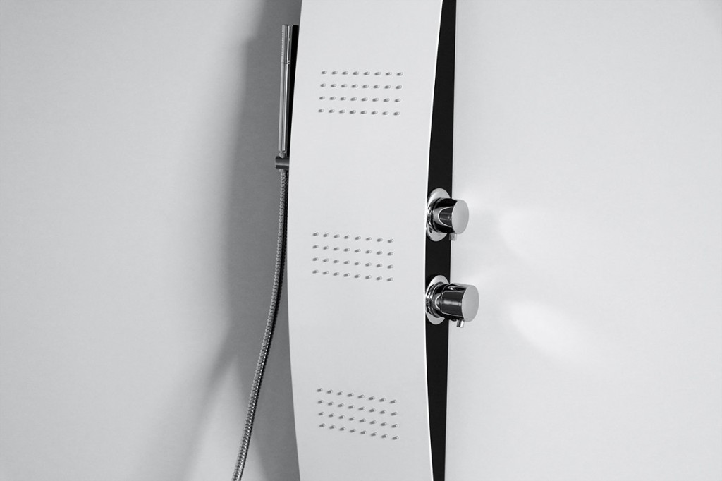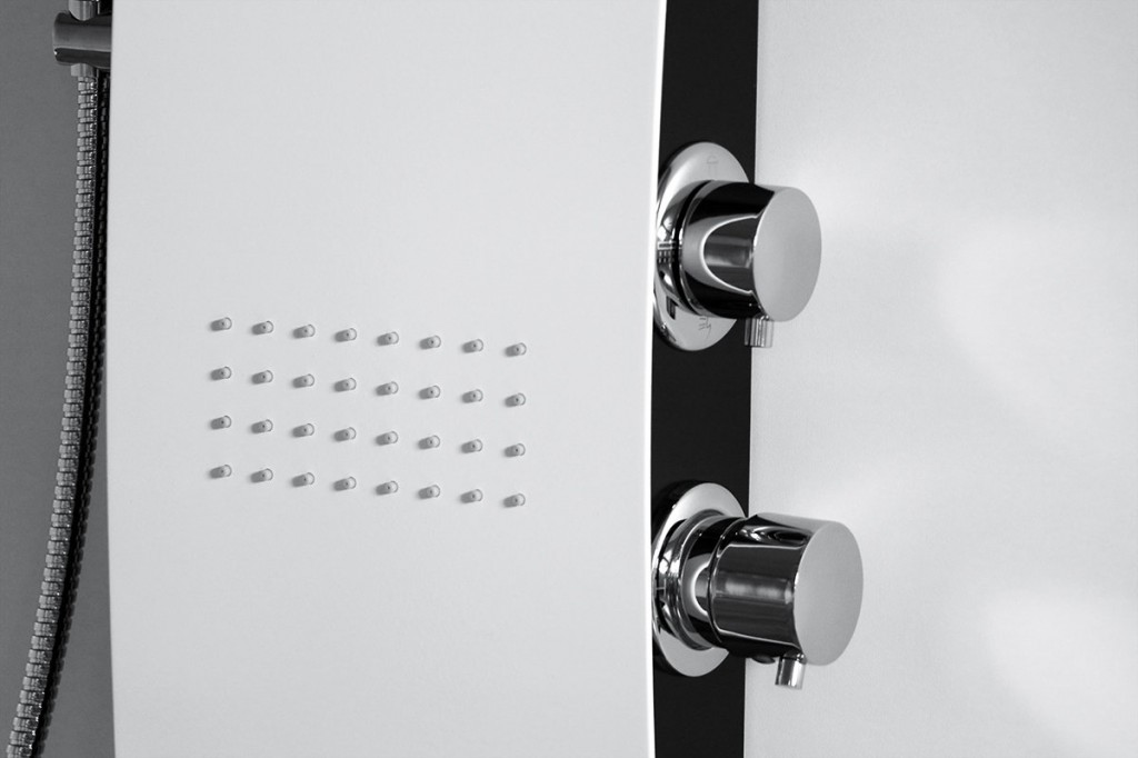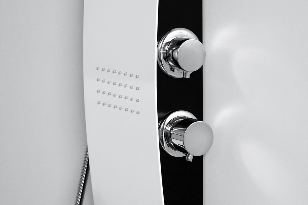 Také prostřednictvím hydromasážního panelu vytvoříte luxusní sprchovací prostor. Hydromasážní sprchové panely mají vrchní sprchu, která je pevná a spodní sprchu, která je spojena s panelem chromovou flexibilní hadicí a ručně nastavitelné trysky. Funkce panelu se programují pomocí regulátoru. Silnějším pootočením se otevírá a zavírá přívod vody, slabším pootočením se mění jednotlivé fukce. K montáži nepotřebujete žádné speciální zařízení. Jednoduše ho připojíte flexibilními hadicemi na přívod teplé a studené vody.