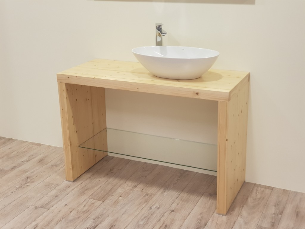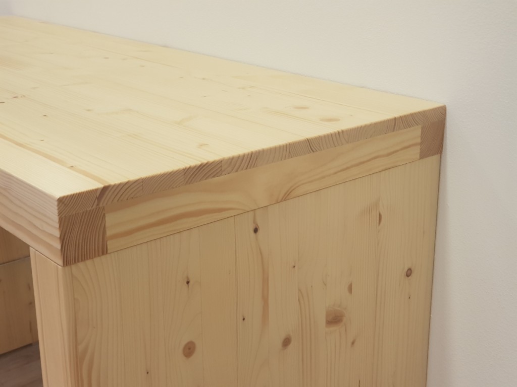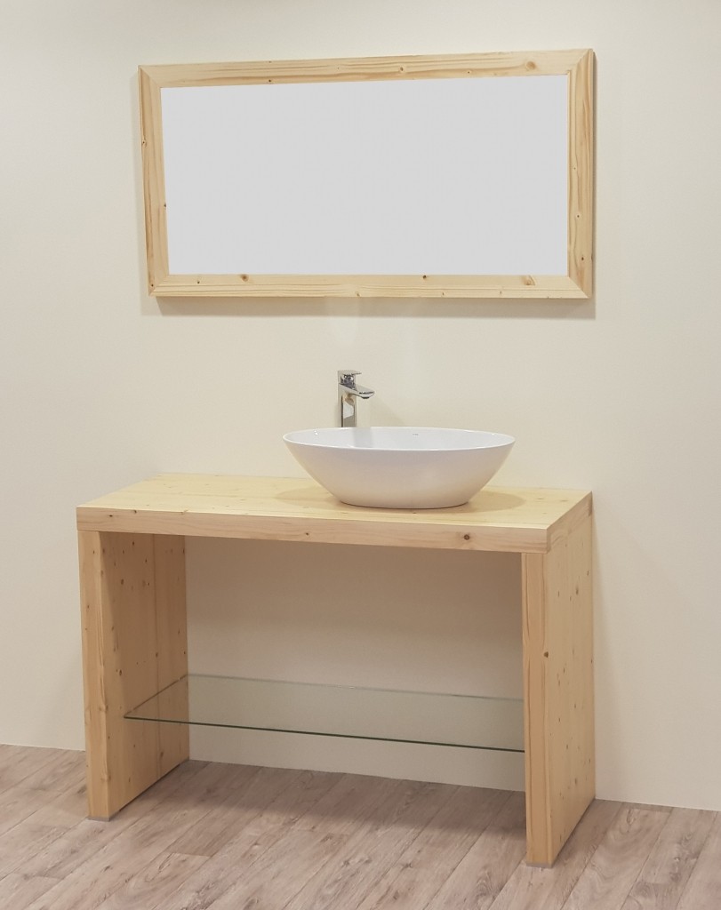 Na stůl jako i na celou kolekci Bern je použitý masivní lakovaný smrk. Na dvířka je použita MDF lakovaná sedmi vrstvím Pur systémem. Vysoko zátěžový speciální PUR lakovací systém určený pro koupelnový nábytek, dává firmě Cederika možnost poskytovat záruku na kolekci Bern 5 let.