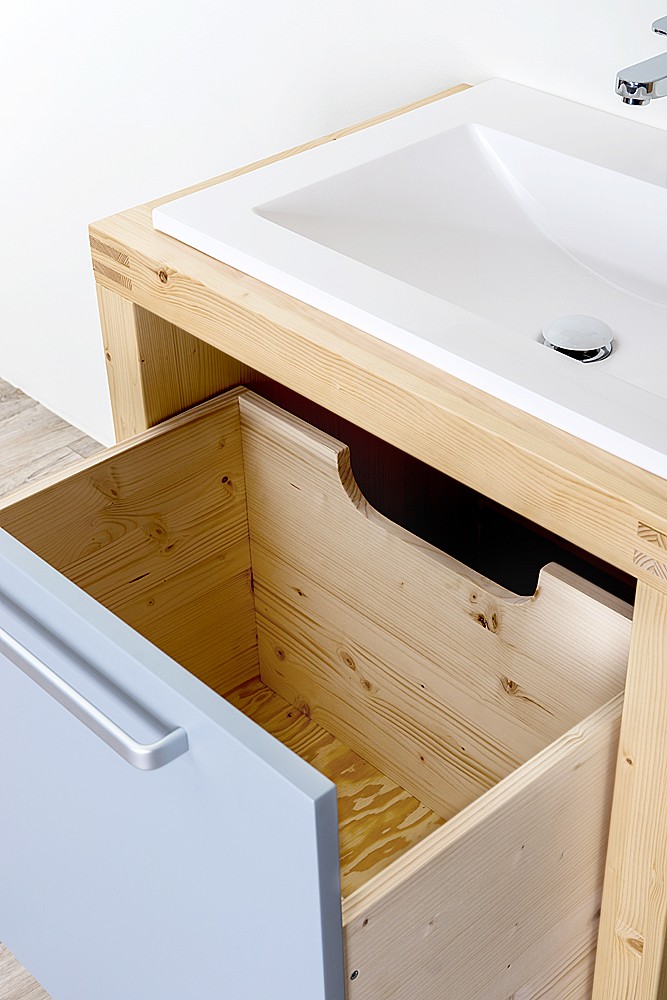 Na korpusy skříněk v kolekci Bern je použitý masivní lakovaný smrk. Na dvířka je použita MDF lakovaná sedmi vrstvím Pur systémem. Vysoko zátěžový speciální PUR lakovací systém určený pro koupelnový nábytek, dává firmě Cederika možnost poskytovat záruku na kolekci Bern 5 let.