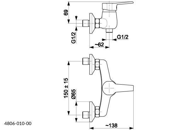 Nástěnná sprchová baterie BERYL od výrobce KFA ARMATURA s roztečí 150 mm bez příslušenství.