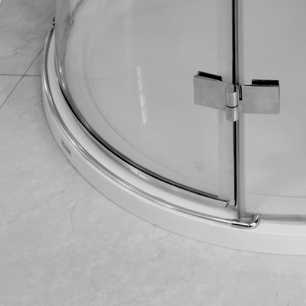 Sprchový kout obloukový s jedněmi otevíracími dveřmi na panty. Jednoduchost pantů harmonicky kontrastuje s masivním chromovým madlem, které dotvářejí celkový dojem pevnosti a stabilty.