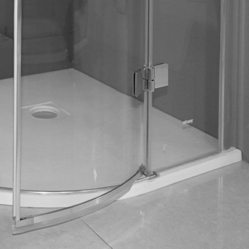 Sprchový kout obloukový s dvěma otevíracími dveřmi na panty. Jednoduchost pantů harmonicky kontrastuje s masivním chromovým madlem, které dotvářejí celkový dojem pevnosti a stabilty.