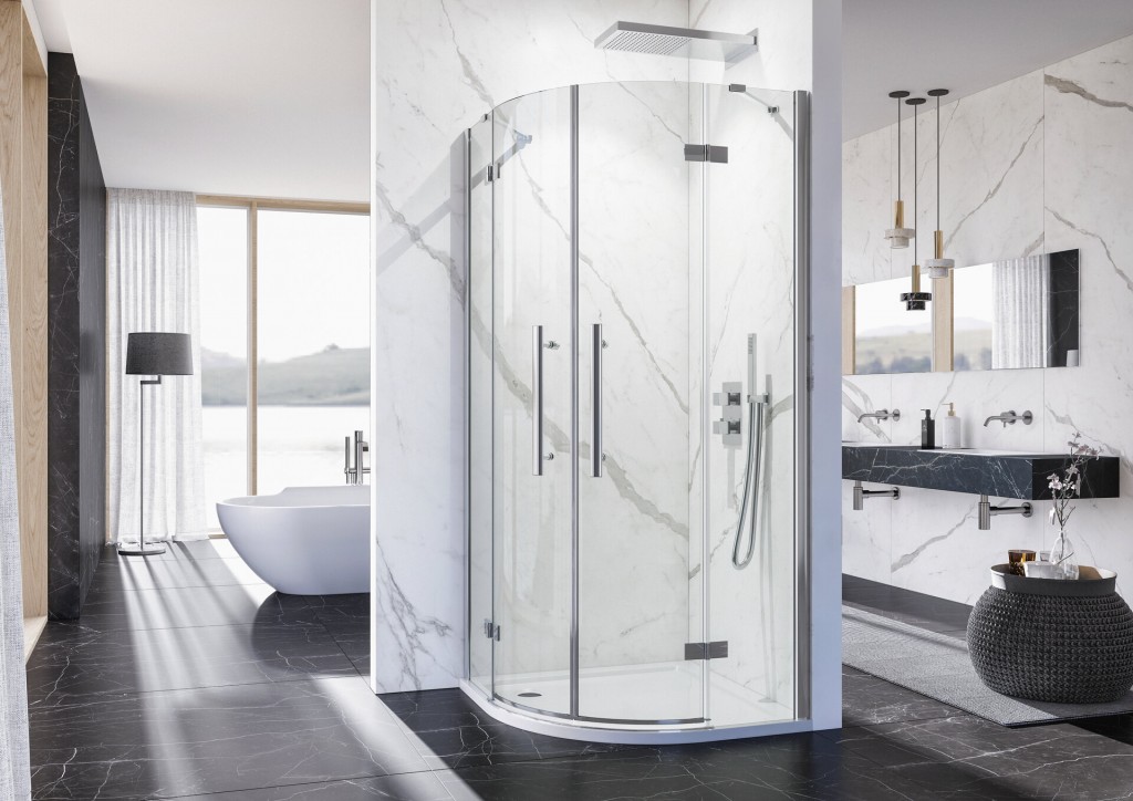 Sprchový kout obloukový se dvěma otevíracími dveřmi