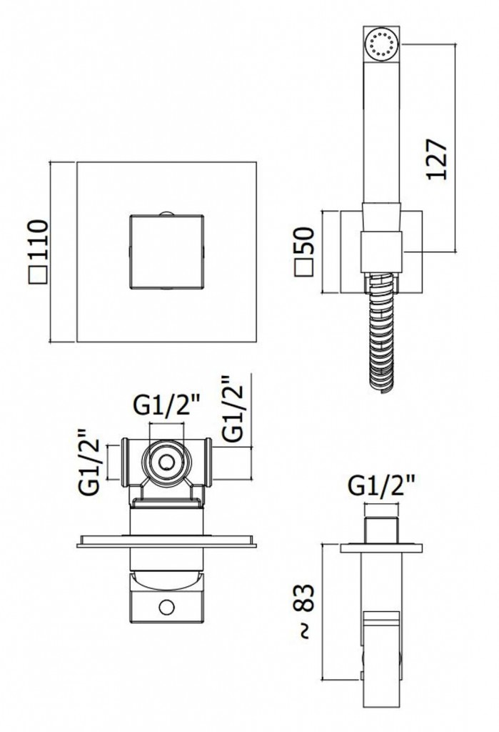 Páková podomítková baterie s bidetovou sprškou, včetně podomítkového tělesa