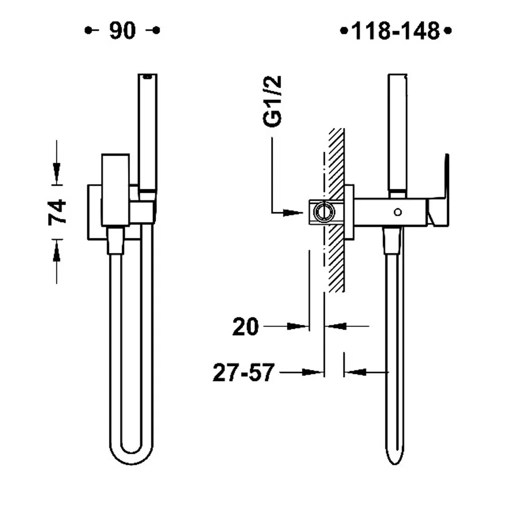 Možnost umístění držáku sprchy vlevo nebo vpravo