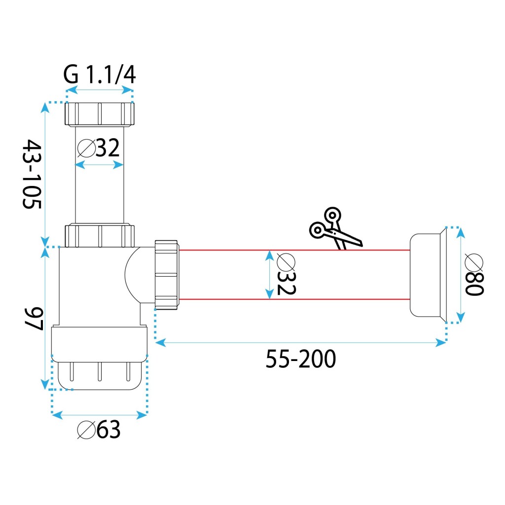 Lahvový, plastový sifon pro umyvadla. Sifon je vhodný pro všechna umyvadla se standardním odtokovým otvorem 45 mm. Sada obsahuje všechny matice a těsnění potřebné pro montáž a použití.