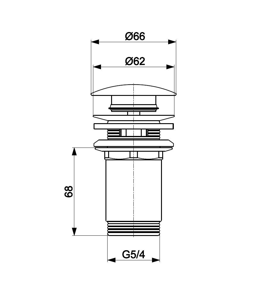 KFA - BIG Zátka klik-klak s přepadem, chrom (660-254-00)