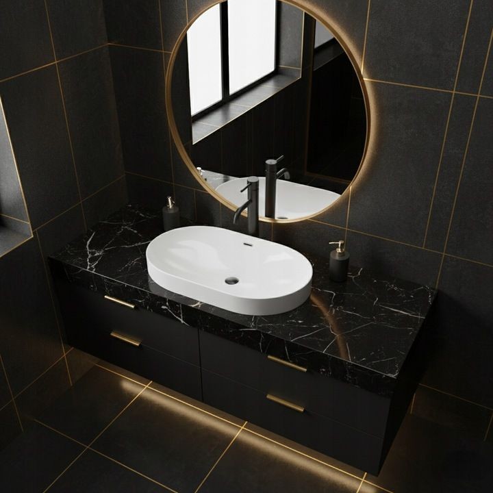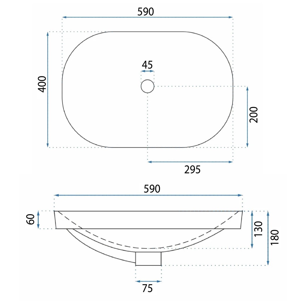 S rozměry 59 × 40 cm, výškou 18 cm a hloubkou mísy 13 cm poskytuje dostatek prostoru pro komfortní hygienu. Jemně oválný tvar mísy podtrhuje moderní design, zatímco tenká hrana o tloušťce 15 mm dodává umyvadlu lehkost a eleganci.