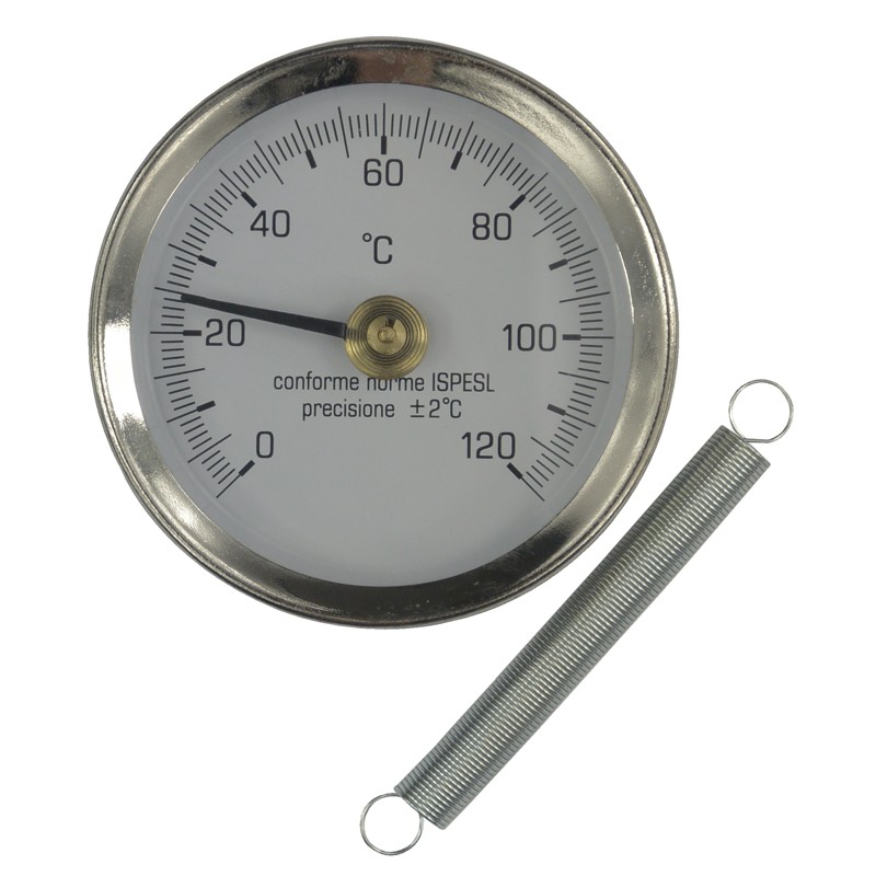 Teploměr bimetalový příložný je určen k měření teploty kovových potrubních rozvodů a kovových rozvodů ústředního topení. Teploměr umožňuje rychlou informaci o teplotě v kterémkoliv místě trubkových rozvodů otopných soustav bez nutnosti jejich narušení, a to pouhým přiložením k povrchu trubky. Na zadní straně tělesa je teploměr vybaven tažnou válcovou pružinou, kterou je trubka opásána. Teploměr bimetalový se používá pro měření teploty v rozmezí 0 - 120 °C.