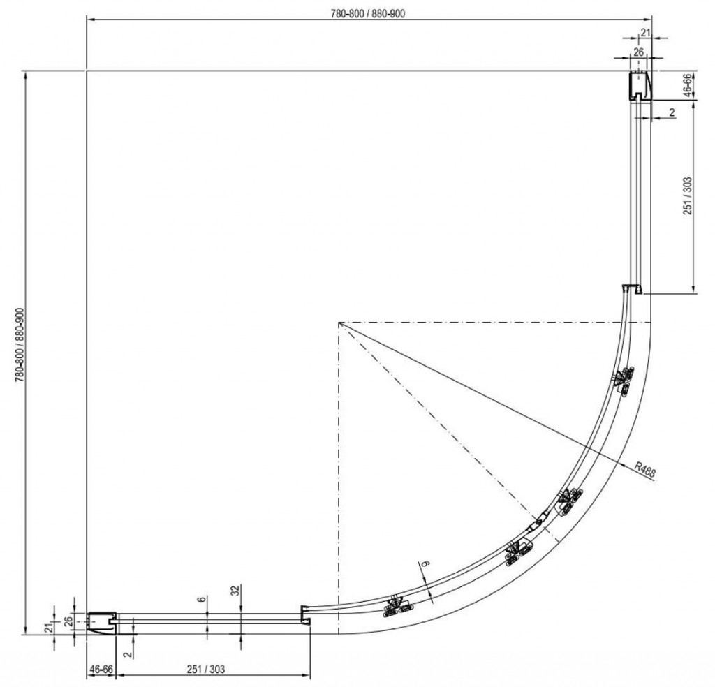 Čtvrtkruhový sprchový kout BLCP4-80, s posuvnými dveřmi