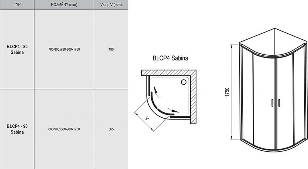 Čtvrtkruhový sprchový kout BLCP4-80, s posuvnými dveřmi