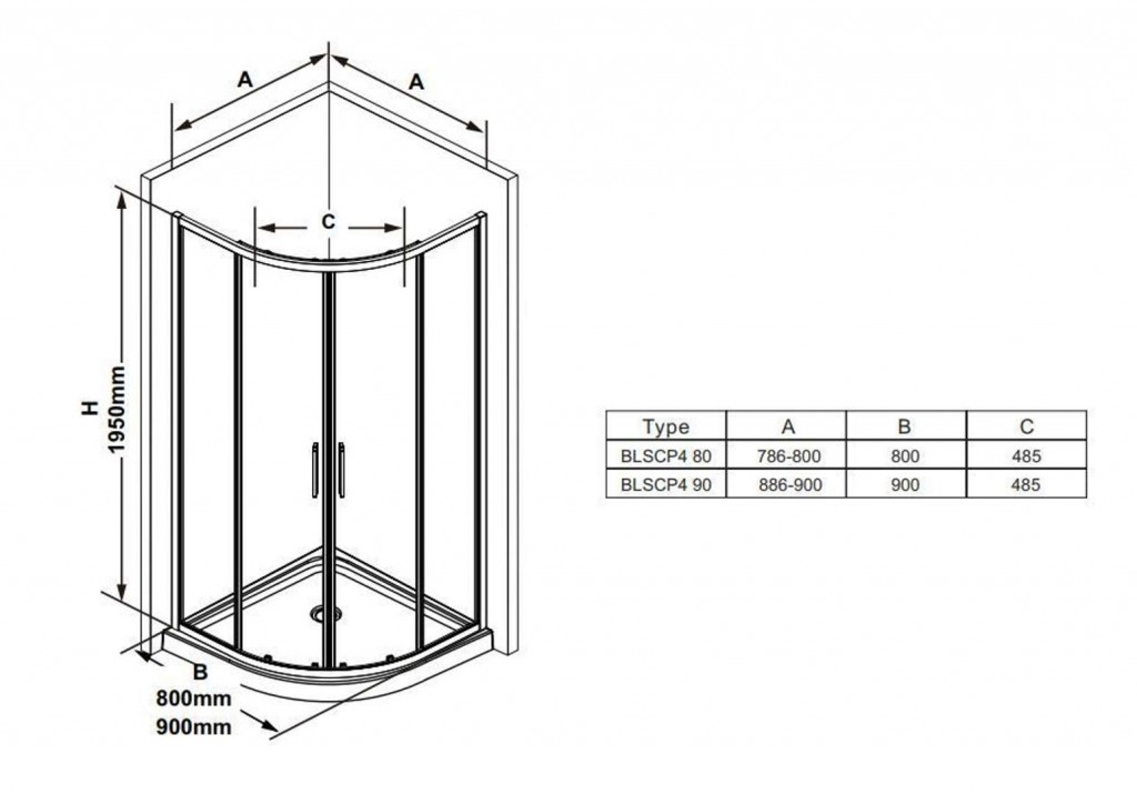 Čtvrtkruhový sprchový kout Slim BLSCP4, čtyřdílný
