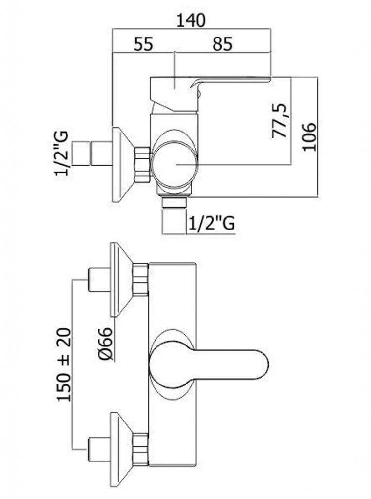 Sprchová nástěnná páková baterie bez sprchového příslušenství