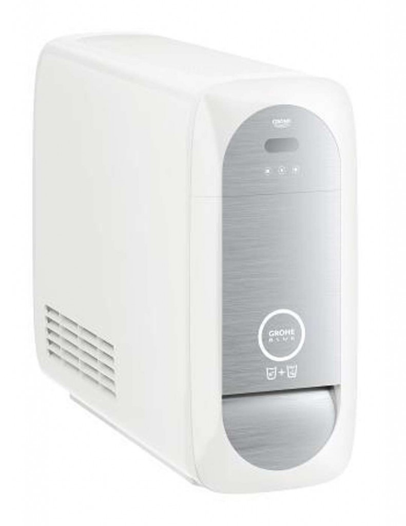 Baterie GROHE Blue přeměňuje běžnou kohoutkovou vodu na čistou, neperlivou stolní vodu, která je zcela bezpečná k pití a má vynikající chuť způsobenou inteligentní filtrační technologií. Voda protéká filtrem zachycujícím nevyžádané látky, jako např. chlór nebo těžké kovy, které mohou způsobovat nepříjemný zápach nebo ovlivňovat chuť vody. Jemný částicový filtr zachytí i ty nejmenší prvky a ve vodě tak zůstane pouze čistá, skvělá a svěží chuť. Filtr rovněž snižuje tvrdost vody, jeho výměna je rychlá a bezproblémová. Čerstvá voda zbavená nevyžádaných látek tak bude vždy k dispozici přímo z kohoutku, vhodná i pro použití v domácích spotřebičích. Také káva a čaj z ní uvařený bude mít plnější a rafinovanější chuť.