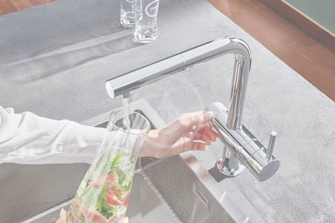 Baterie GROHE Blue Pure přemění běžnou kohoutkovou vodu v čerstvou vodu odstraněním veškerých součástí, které mohou ovlivnit její chuť. Oddělené vnitřní rozvody pro filtrovanou a nefiltrovanou vodu, hygienický perlátor se dvěma výstupy, jsou jednoznačnou konkurenční výhodou. Výborné alternativní řešení pro ty, kteří mají rádi přírodní chuť neperlivé vody bez chlórové pachuti nebo nepříjemného zápachu.