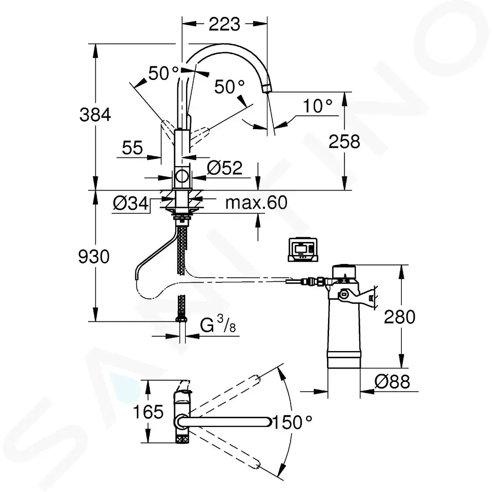 Tato kuchyňská baterie řady GROHE Blue Pure poskytuje čerstvou stolní vodu přímo z vodovodního kohoutku. Voda protéká filtrem zachycujícím nevyžádané látky, jako např. chlór nebo těžké kovy, které mohou způsobovat nepříjemný zápach nebo ovlivňovat chuť vody. Jemný částicový filtr zachytí i ty nejmenší prvky a ve vodě tak zůstane pouze čistá, skvělá a svěží chuť. Filtr rovněž snižuje tvrdost vody, jeho výměna je rychlá a bezproblémová. Čerstvá voda zbavená nevyžádaných látek tak bude vždy k dispozici přímo z kohoutku, vhodná i pro použití v domácích spotřebičích. Také káva a čaj z ní uvařený bude mít plnější a rafinovanější chuť.
