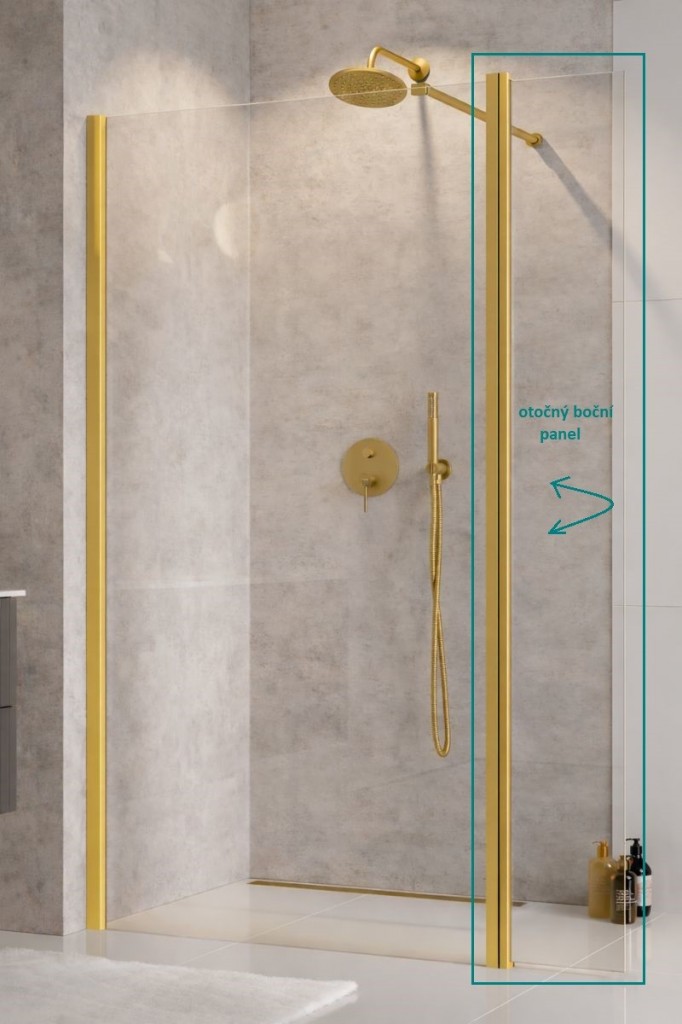 Při montáži Walk-in ECO-N GOLD včetně tohoto bočního otočného panelu ECO-N GOLD je instalace možná pouze přímo na podlahu, nelze nainstalovat na vaničku z důvodu většího montážního rozměru.