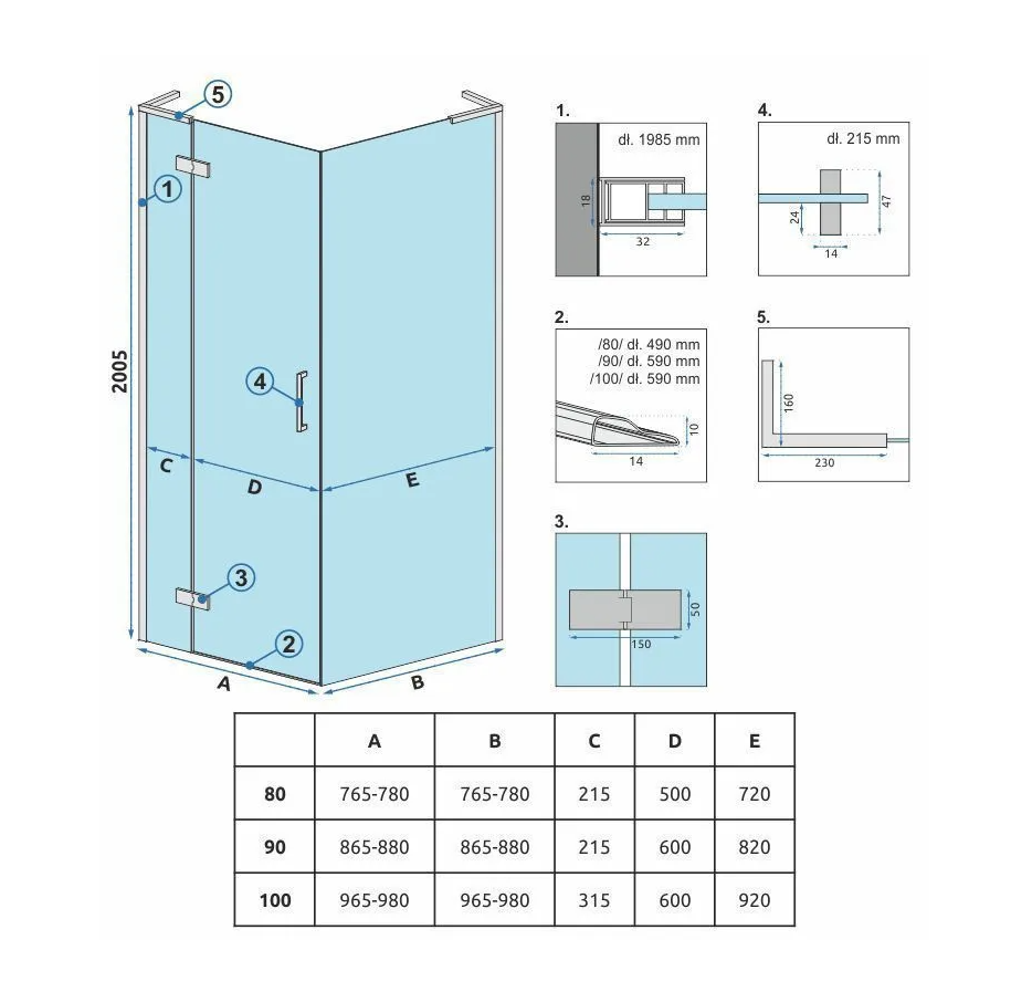 | Instalace | se sprchovými dveřmi na vaničku nebo přímo na podlahu |
