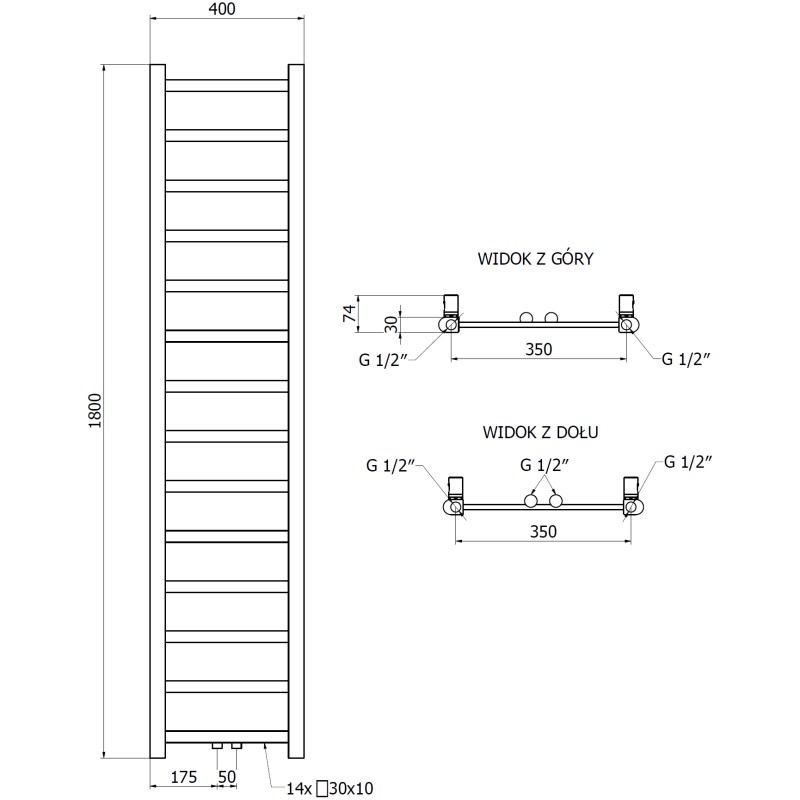 - 35 cm (dole) nebo 5 cm (uprostřed)
