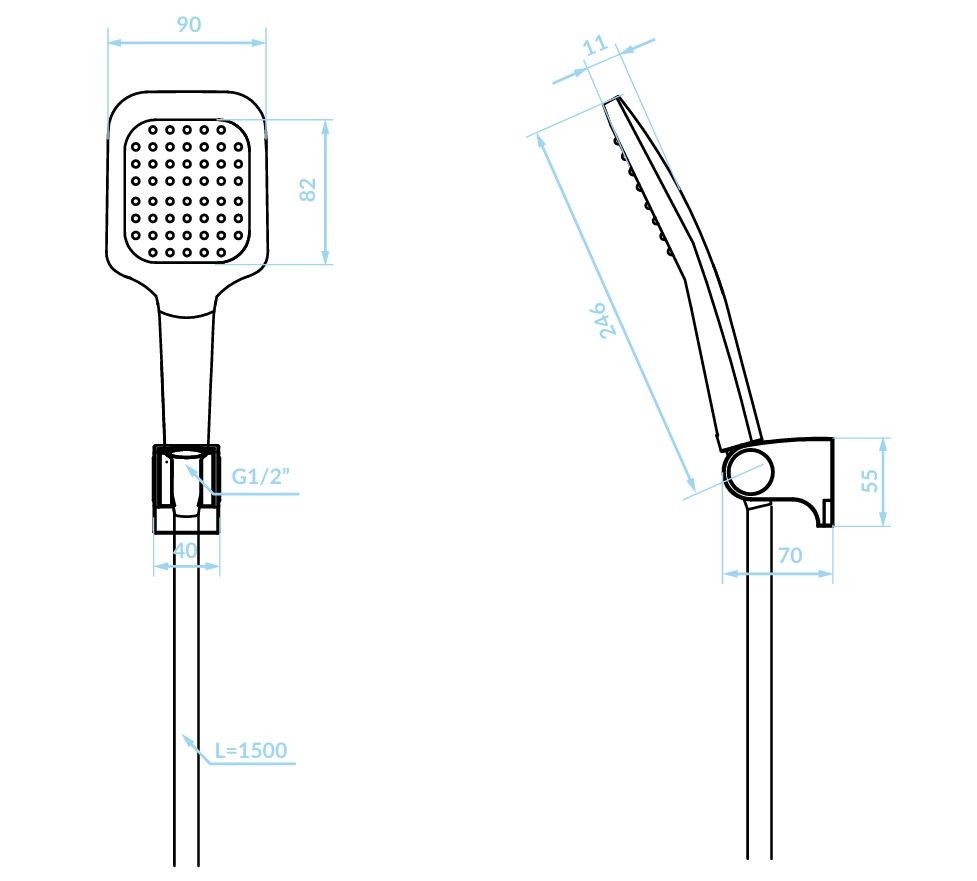 Hadice o délce 1500 mm zajišťuje dostatečný rozsah pohybu a snadnou manipulaci, ať už sprchu používáte samostatně, nebo v kombinaci s držákem.