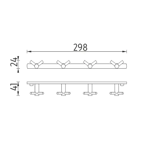 Čtyřháček s dvojitými háčky s chromovanými krytkami vrutů.