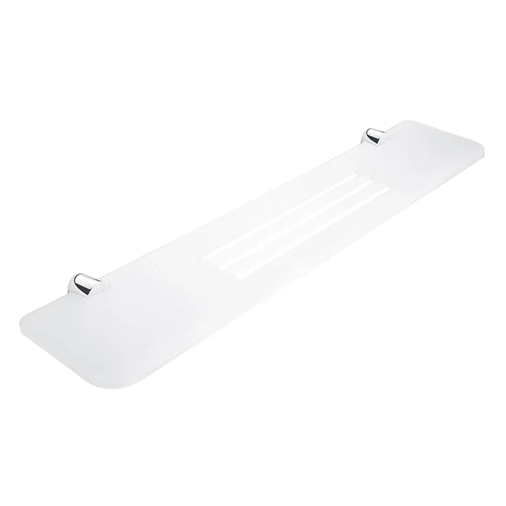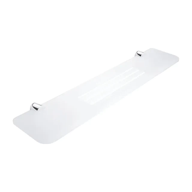Police s frézovanými otvory. Materiál plexiglass s matovaným povrchem. Délka 60 cm.