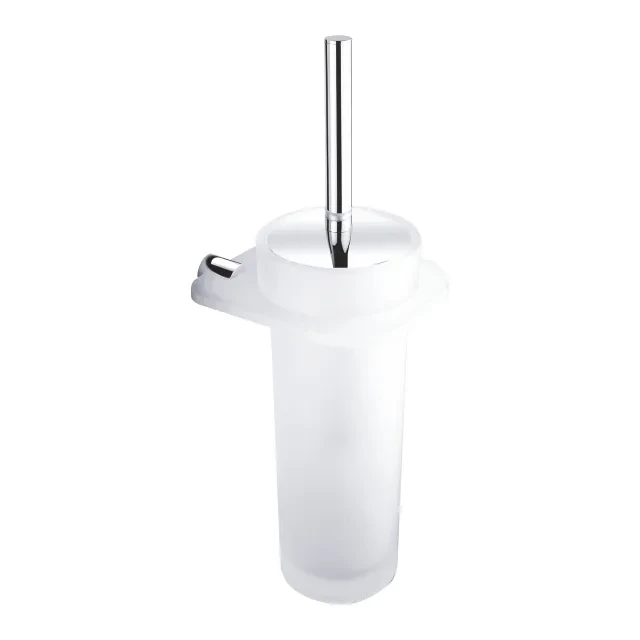 Toaletní WC kartáč. Nádobka z matovaného skla. Úchyt plexiglass s matovaným povrchem.
